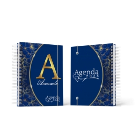 Agenda Floral Azul Escuro - Mod.01 | Capa Dura Wire-o | 15x21cm | 350 páginas | 1 dia por página