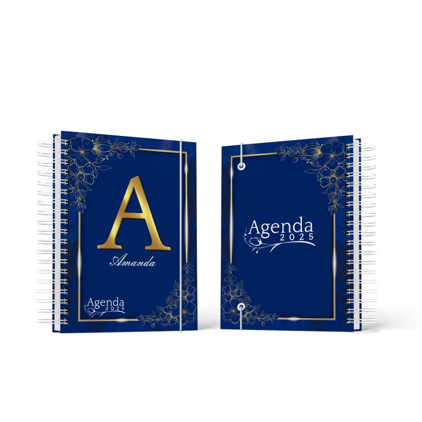 Agenda 2025 Floral com capa personalizada com Letra e Nome.