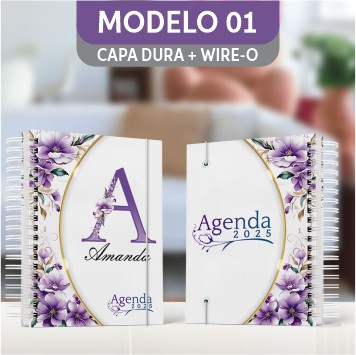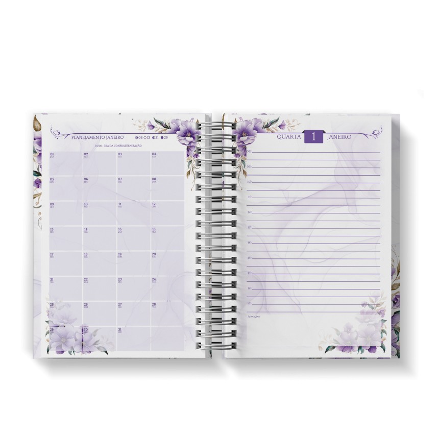 Agenda Floral Lilás - Mod.01 | Capa Dura Wire-o | 15x21cm | 350 páginas | 1 dia por página