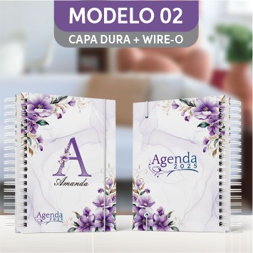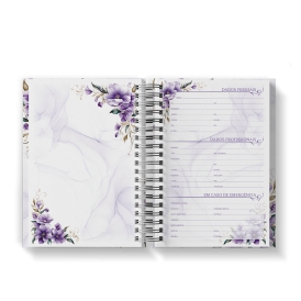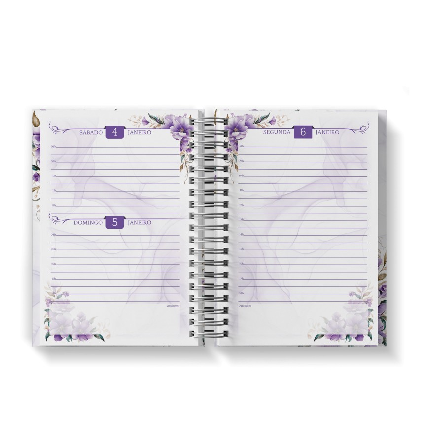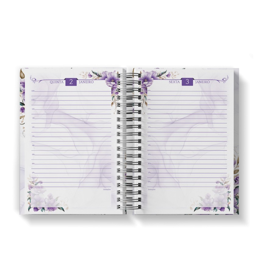 Agenda Floral Lilás - Mod.02 | Capa Dura Wire-o | 15x21cm | 350 páginas | 1 dia por página