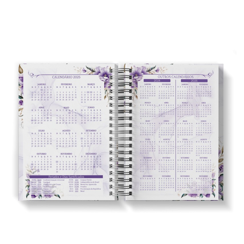 Agenda Floral Lilás - Mod.04 | Capa Dura Wire-o | 15x21cm | 350 páginas | 1 dia por página