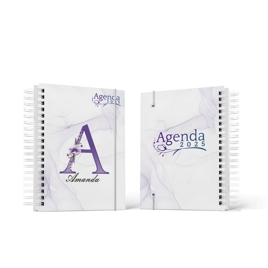 Agenda 2025 Floral com capa personalizada com Letra e Nome.