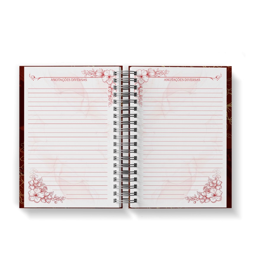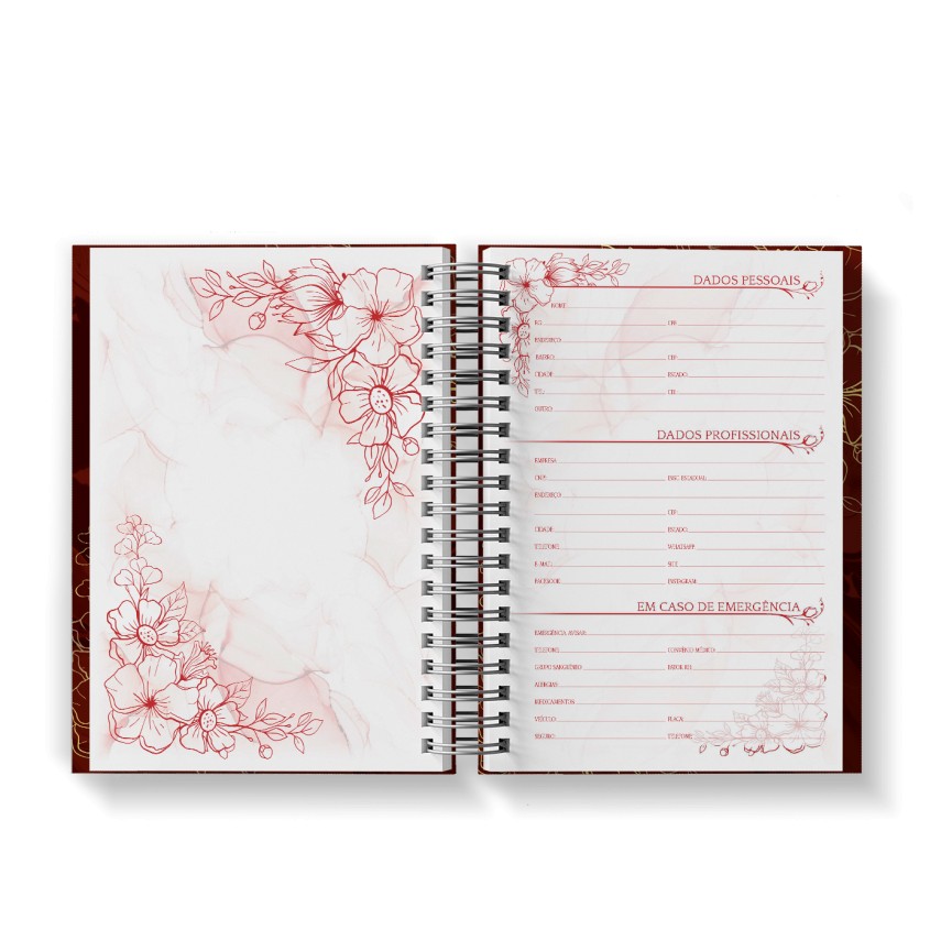 Agenda Floral Marsala - Mod.03 | Capa Dura Wire-o | 15x21cm | 350 páginas | 1 dia por página