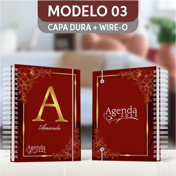 Agenda 2025 Floral com capa personalizada com Letra e Nome.