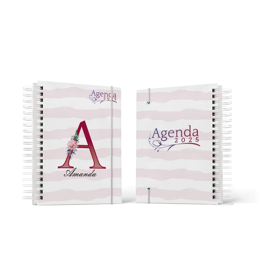 Agenda 2025 Floral com capa personalizada com Letra e Nome.