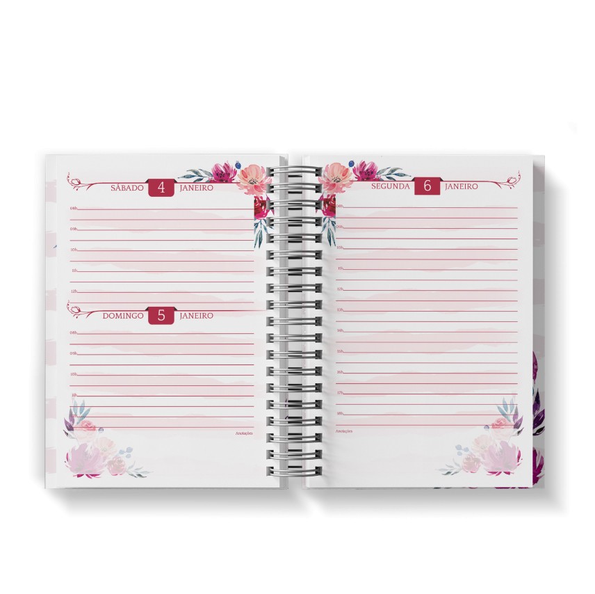 Agenda Floral Rosa - Mod.04 | Capa Dura Wire-o | 15x21cm | 350 páginas | 1 dia por página