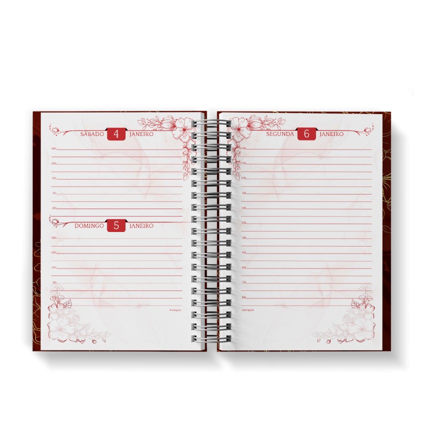 Agenda Floral Vermelho - Mod.02 | Capa Dura Wire-o | 15x21cm | 350 páginas | 1 dia por página