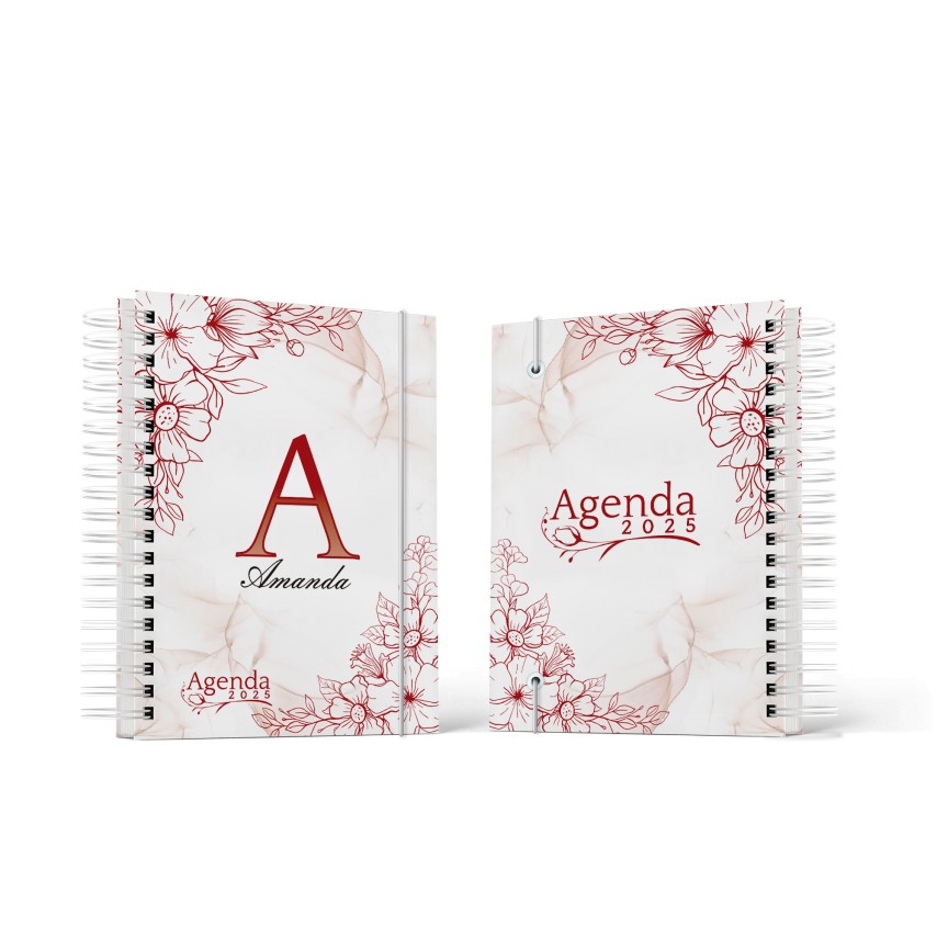 Agenda 2025 Floral com capa personalizada com Letra e Nome.