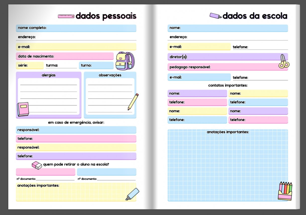 Agenda Personalizada | Escolar Menina | 15x21cm | 380 páginas | 1 Dia por página