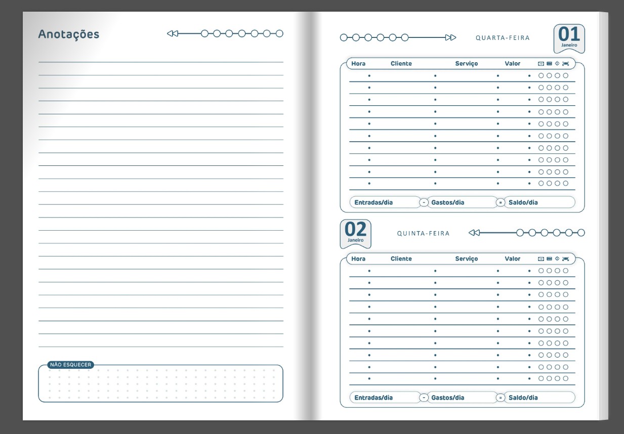 Agendas Capa Dura são produzidas com as páginas no tamanho e 15,45x21,6 cm. Essa medida é muito popular, já que pode ser utilizada por secretárias, empresários e estudantes.