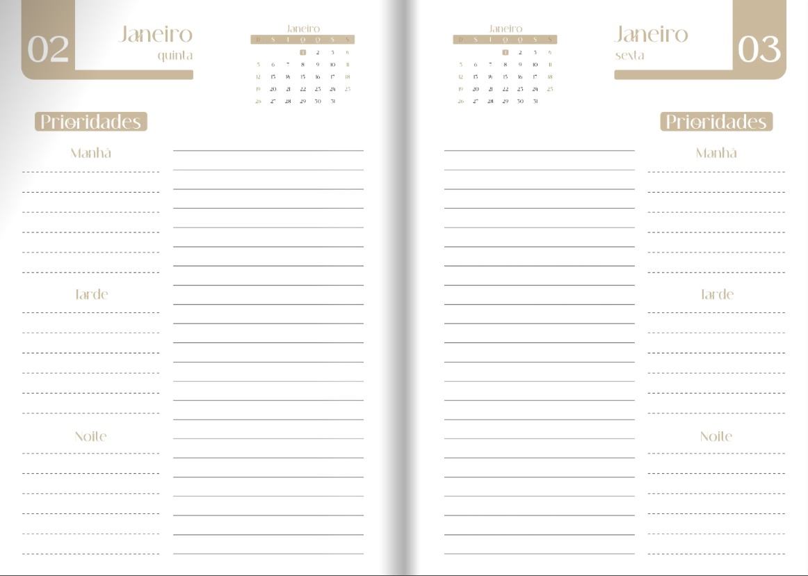 Está procurando por uma forma de organizar seus compromissos e planejar os próximos meses? Você precisa da Agenda 2025. É difícil priorizar o que você tem para fazer quando tudo está emaranhado na sua cabeça. O problema é que a vida não para, e as coisa mudam rapidamente. A Agenda 2025 vem com páginas datadas para rastrear todos os compromissos diários, Sábado e Domingo em uma página, planejamento anual e espaço nos cantinhos das páginas diárias para anotações importantes ou lembretes visuais..