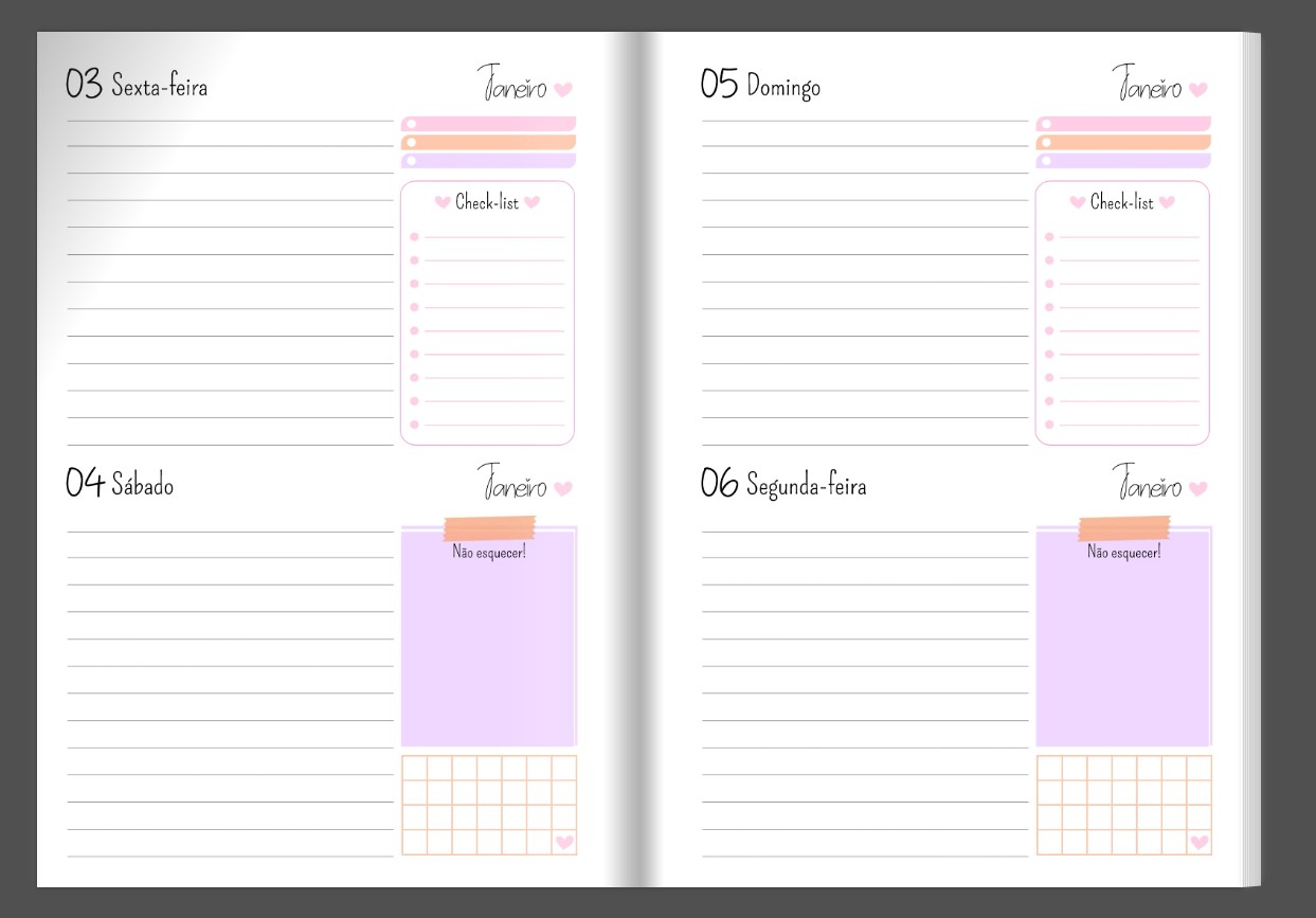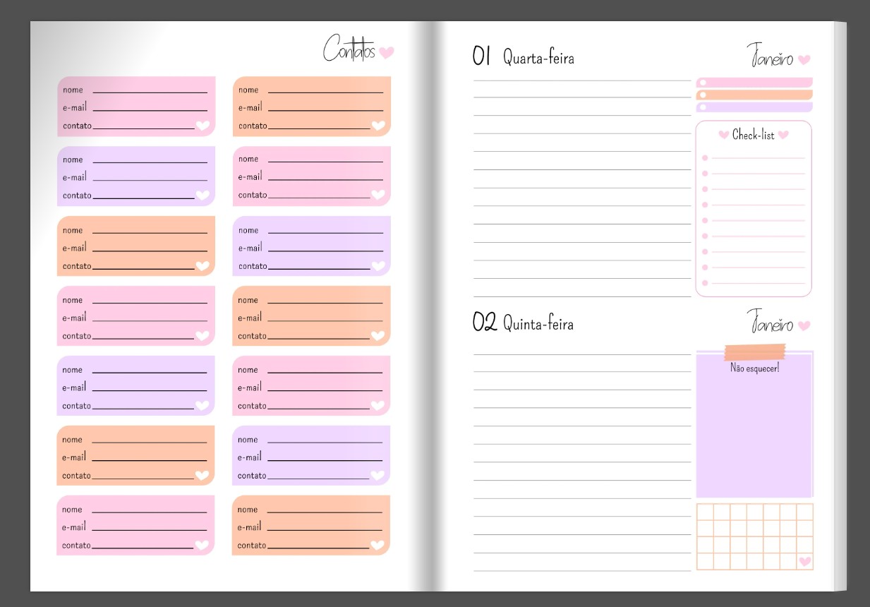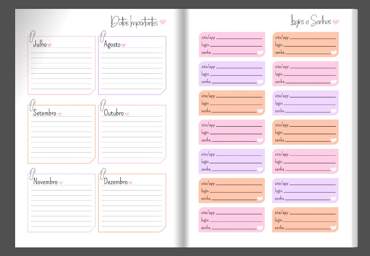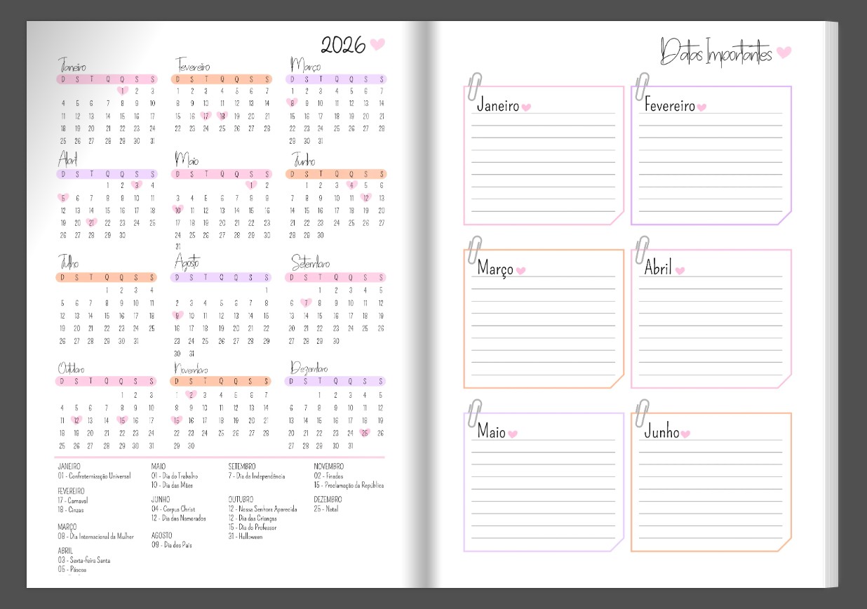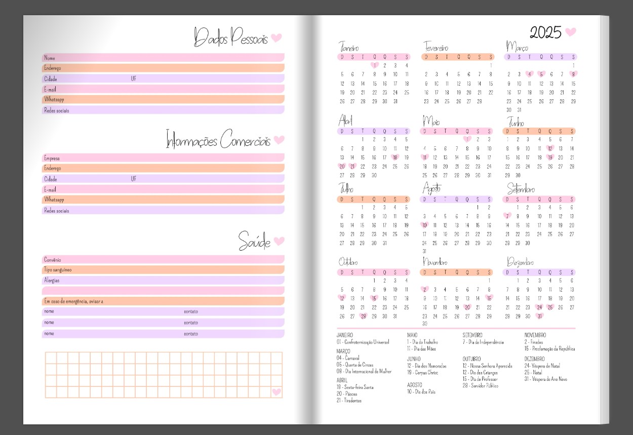 Agenda Personalizada | Modelo Lovers | 15x21cm | 200 páginas | 2 Dias por página