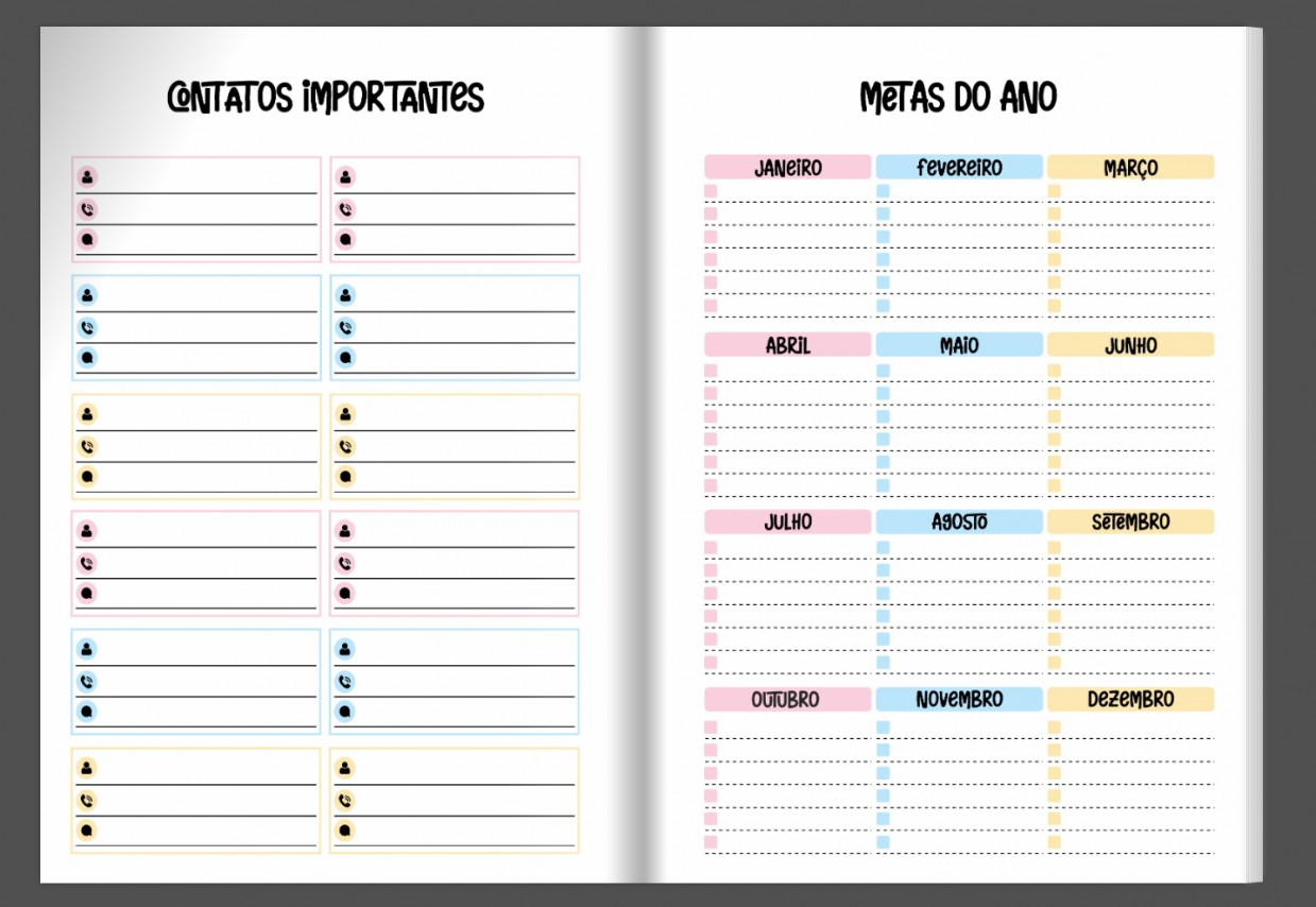 Está procurando por uma forma de organizar seus compromissos e planejar os próximos meses? Você precisa da Agenda 2025. É difícil priorizar o que você tem para fazer quando tudo está emaranhado na sua cabeça. O problema é que a vida não para, e as coisa mudam rapidamente. A Agenda 2025 vem com páginas datadas para rastrear todos os compromissos diários, Sábado e Domingo em uma página, planejamento anual e espaço nos cantinhos das páginas diárias para anotações importantes ou lembretes visuais..