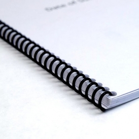 Espiral: capa da frente em PVC translúcido, de trás com PVC Preto, espiral preto ou transparente. Limite de 300 folhas (600 páginas frente e verso).