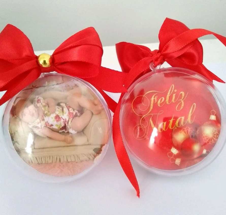 Bolinha de Acrílico Personalizada com Fotos para enfeite de Arvore de Natal (Sem Bolinhas de Isopor)