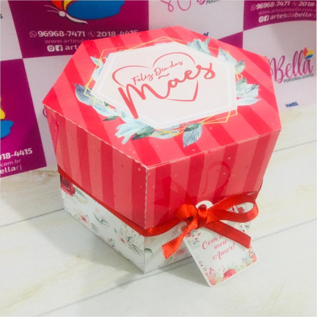 Caixa Explosiva Dia das Mães de 6 lados para Caneca ou Doces