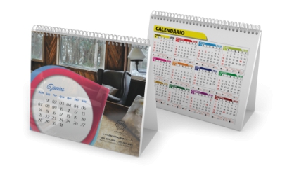 Calendário de Mesa com Wire-o é um modelo de Calendário que possui o sofisticado acabamento de Wire-o já incluso, ao invés do tradicional espiral, proporcionando maior facilidade ao virar as páginas, e deixando o calendário de mesa mais moderno e atrativo.