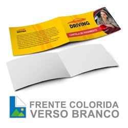 Aqui você pode imprimir capa de carnê em papel couchê ou em papel cartão. A capa de carne serve para prender os boletos de mensalidades de uma determinada instituição. O formato base de um boleto de cobrança é 10x21cm ou 9x20cm por isso as capas de carnê tem o formato aberto 10x42cm e fechado 10x21cm. A capa de carnê pode receber impressão na parte externa, 4/0, e também na parte interna, 4/4. Como opcional temos a opção de capa de carnê com janela, para que o seu cliente possa identificar o proprietário do carnê sem ter que abrir a cartela.