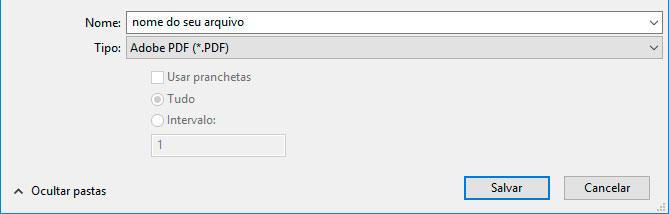 Informe o nome para o seu arquivo, escolha o tipo Adobe PDF e clique em Salvar.