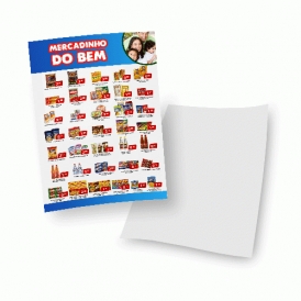 Também disponível em papel couchê de 115g, 150g e 170g, conhecido por sua superfície lisa e capacidade de reprodução de cores vibrantes e detalhadas. Os tamanhos menores, além de compacto e versátil que é ideal para distribuição em massa e fácil manuseio.