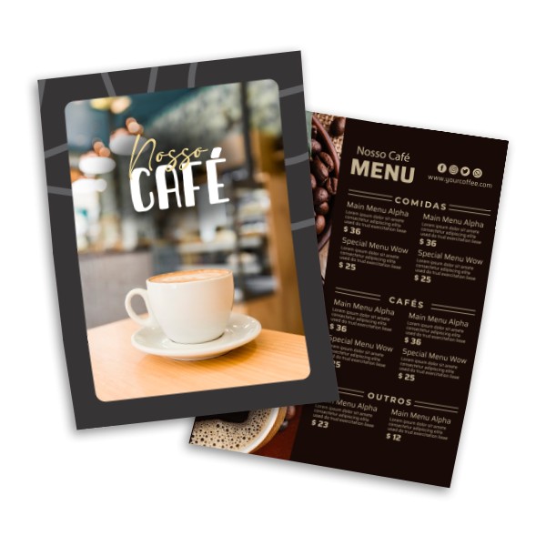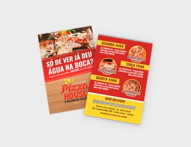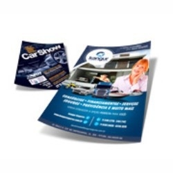 Disponível em papel couchê de 80g e 90g, conhecido por sua superfície lisa e capacidade de reprodução de cores vibrantes e detalhadas. O tamanho 14x20 cm, um tamanho versátil e portátil que é ideal para distribuição em massa e fácil manuseio.