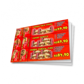 fornece modelos de folheto cupom de desconto com as serrilhas já pré-definidas, dessa forma você e seu cliente economizam, não tendo que arcar com uma faca especial.