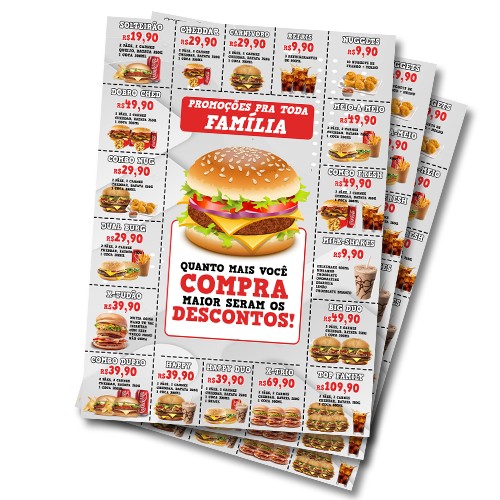 o Folheto Cupom de Desconto, visa ajudar seus clientes de fast food a obterem maior índice de recompra, ou seja, do consumidor voltar ao estabelecimento fazendo uma nova compra.