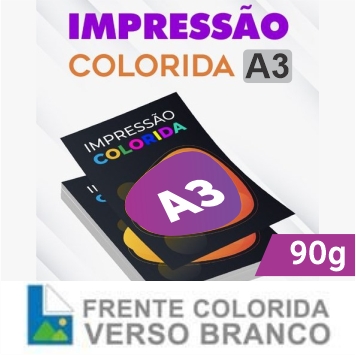 Impressão Colorida Papel Sulfite 90g | A3 | 4/0 | Jato de Tinta