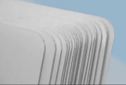 Os adesivos têm como característica o acabamento de “meio corte”, em que é realizado um corte apenas na parte que será destacada do adesivo, facilitando a retirada da base, como mostra a imagem abaixo: