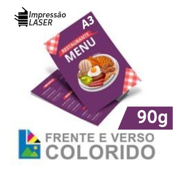 Impressão Papel Couchê 90g | A3 | Brilho | 4/4 | Laser - Frente/Verso