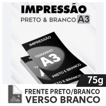 Impressão Preto e Branco Papel Sulfite 75g | A3 | 1/0 | Jato de Tinta