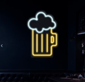 Led Neon Caneca de Cerveja 36x54cm | Amarelo Âmbar e Branco Frio