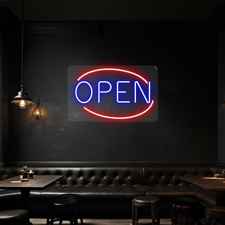 Led Neon Open 40x25cm | Azul e Vermelho