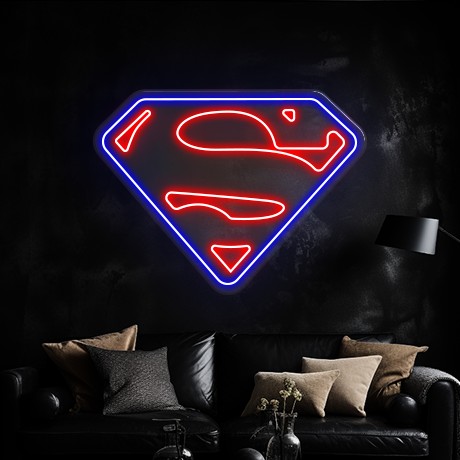 Led Neon Super Man 40x30cm / 60x50cm | Azul / Vermelho
