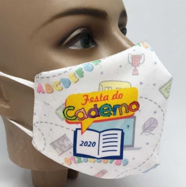 Confeccionada em tecido Oxford lavável e reutilizável com dupla face e elástico para colocar na orelha