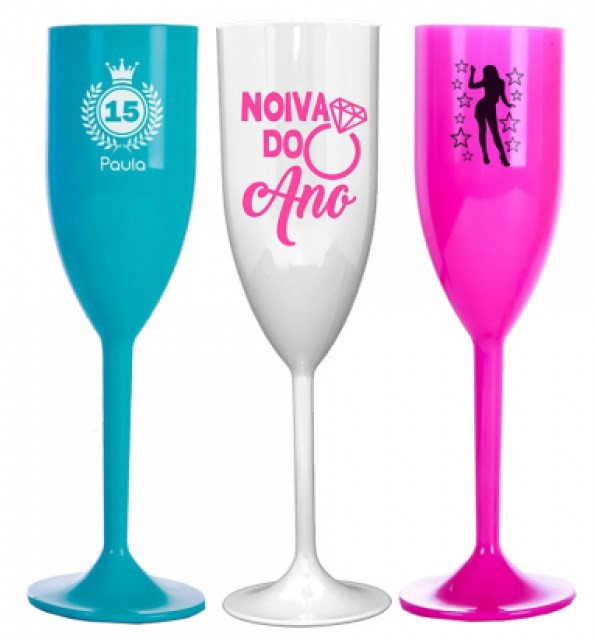 Taça Champagne Acrilico Lisa 184ml - Estampa em Transfer