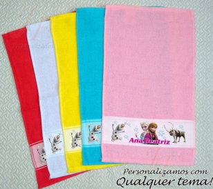 .Toalhinha Colorida com faixa Personalizada | Lavabiniho 23x28cm